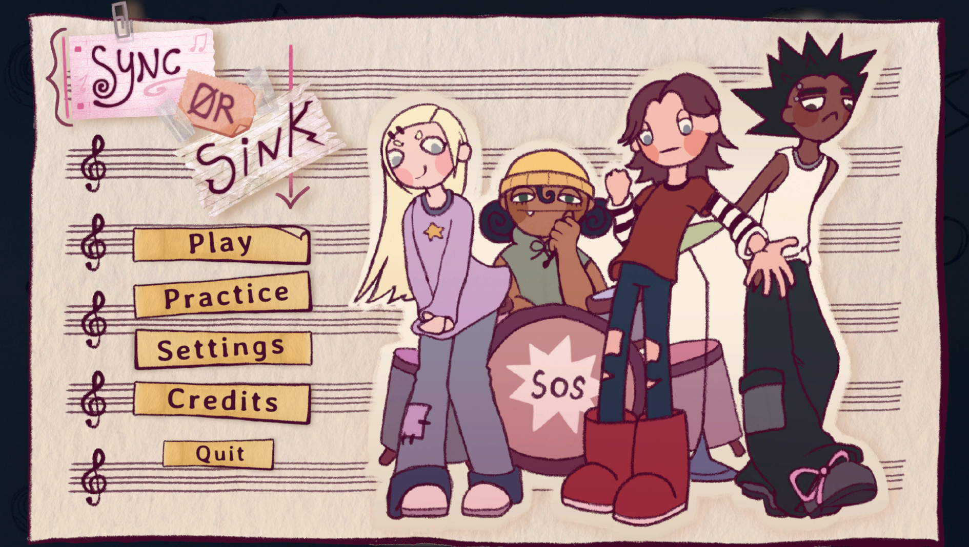 Sync or Sink is a fast-paced rhythm game following a band chasing success by winning their local competition. Players must master each member's unique instrument before taking on the ultimate performance; where the band must either sync or sink.