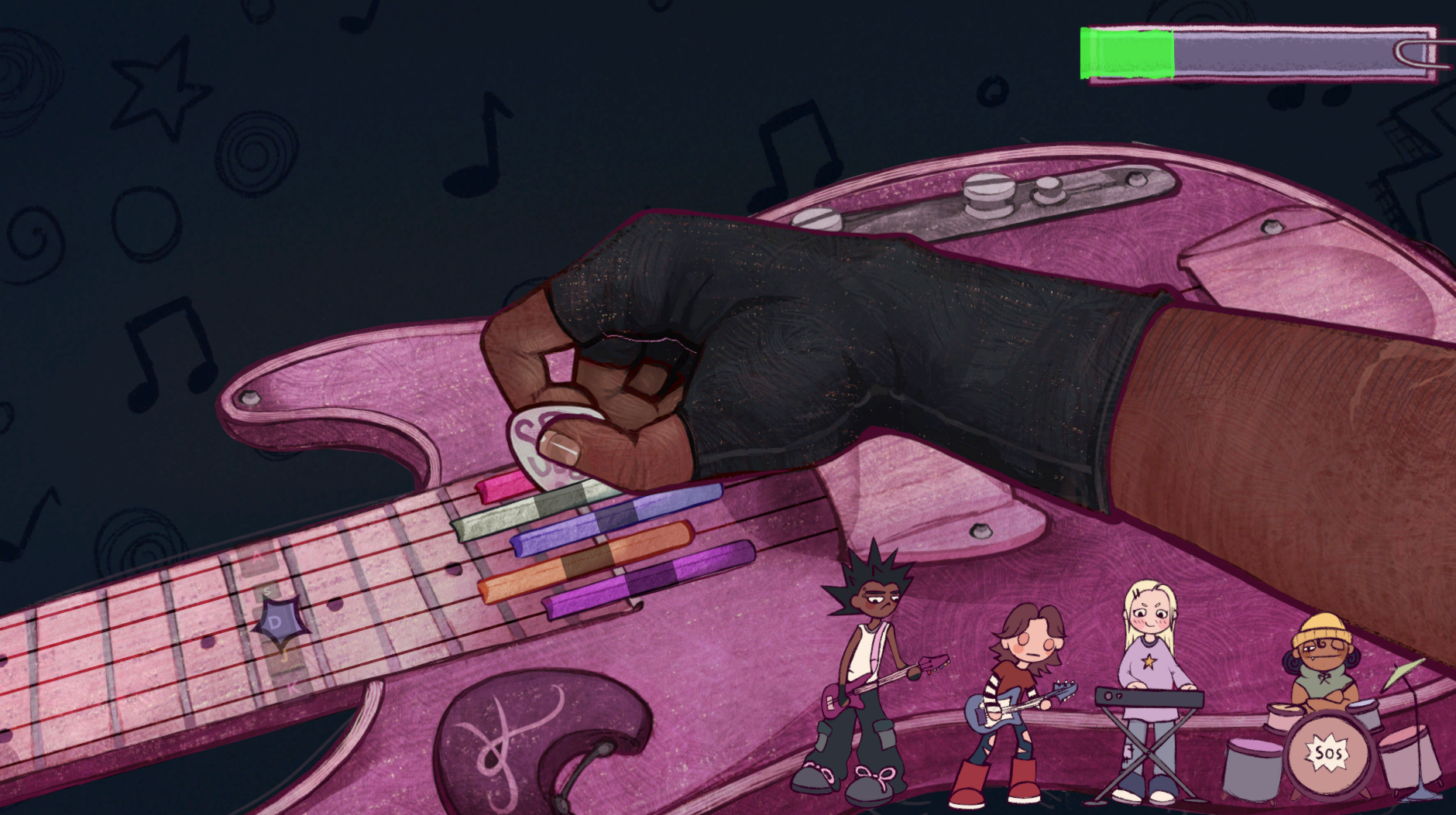 - Band Member Visualization: Characters react to players performance in real time to bring the band to life!