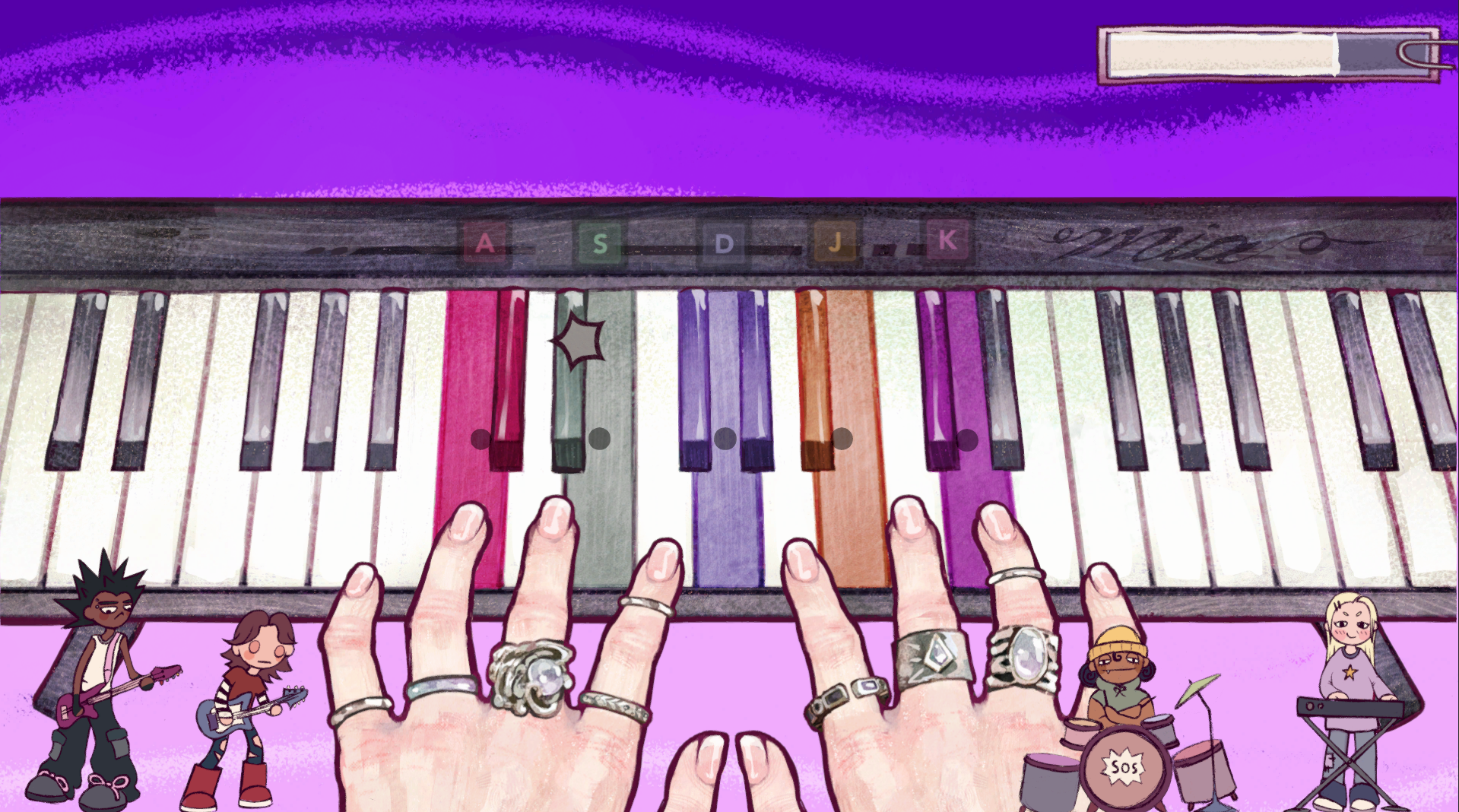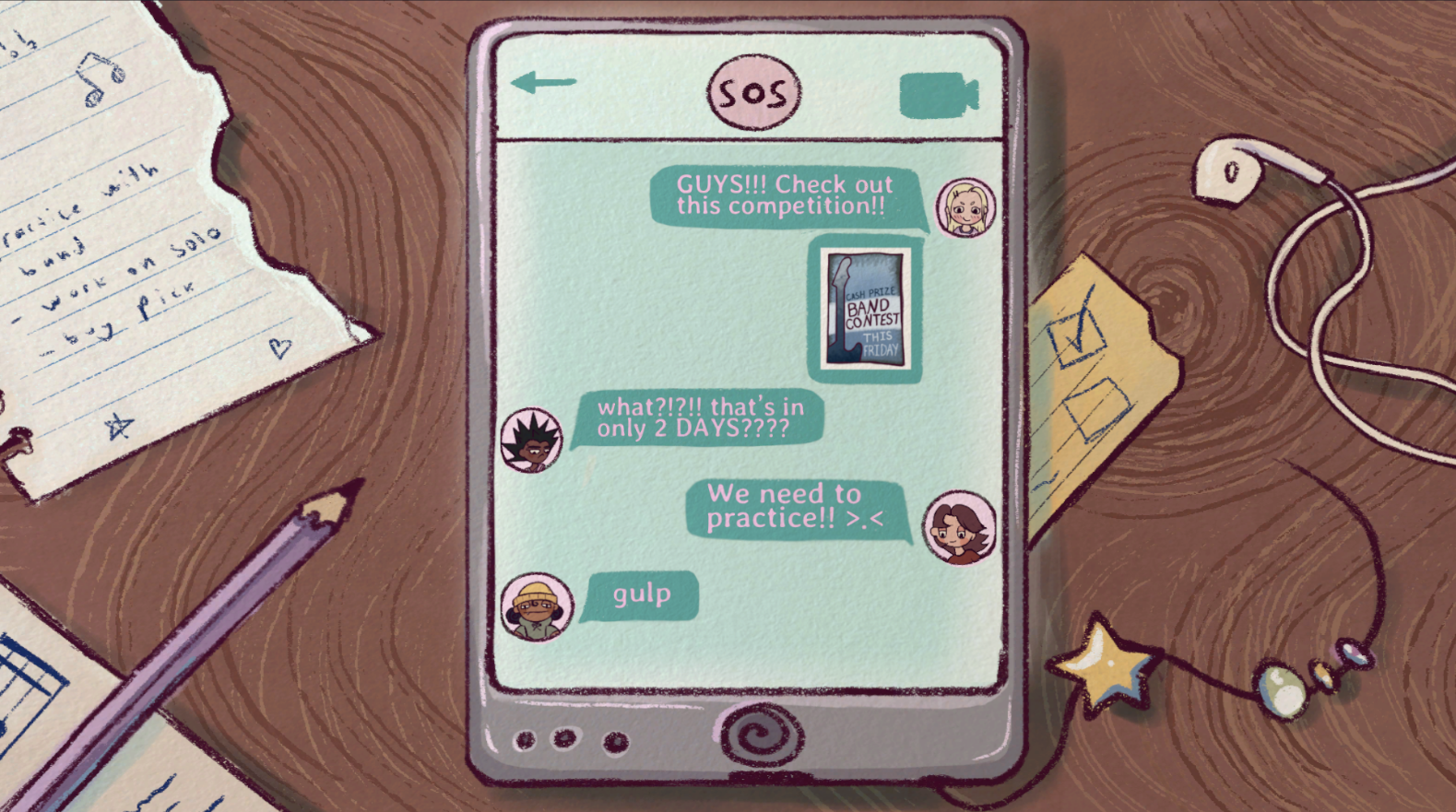 S.O.S. features four band members, (Connor, Jax, Isaiah, Mia), and five unique levels, each exploring one of the four band members' instrument. This introduces new song patterns to memorize, and puts the player’s coordination to the test!
